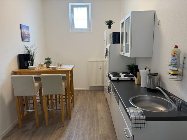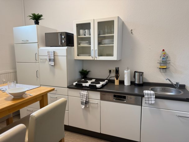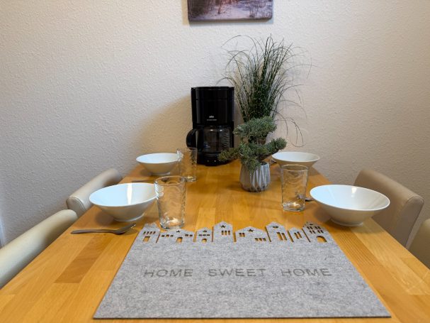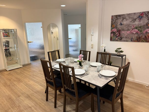 Der große Essbereich lädt zum Zusammen kochen ein, während man trotzdem noch die Freiheit hat sich in das gemütliche Schlafzimmer zurückzuziehen.