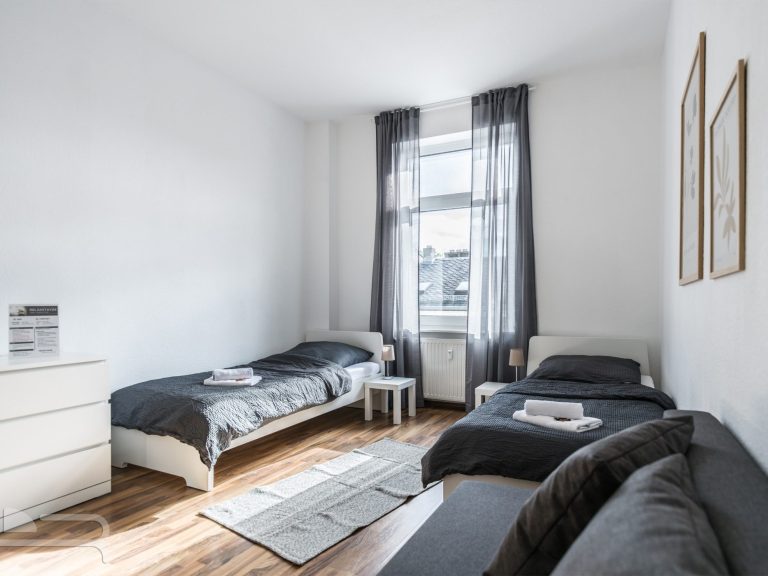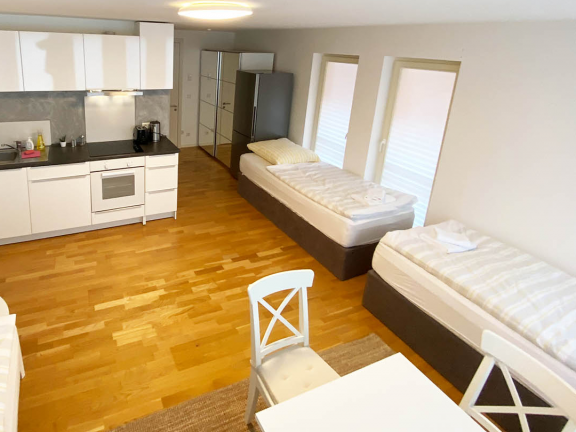 Die frisch renovierte Wohnung bietet auf 4 Schlafzimmern ausreichend Platz für größere Teams oder das Management.